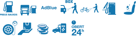Carburante y Autolavado 24h – Tenda, butano y servicio atendido: Laborables de 08:30 a 13:30; 16:00 a 19:00